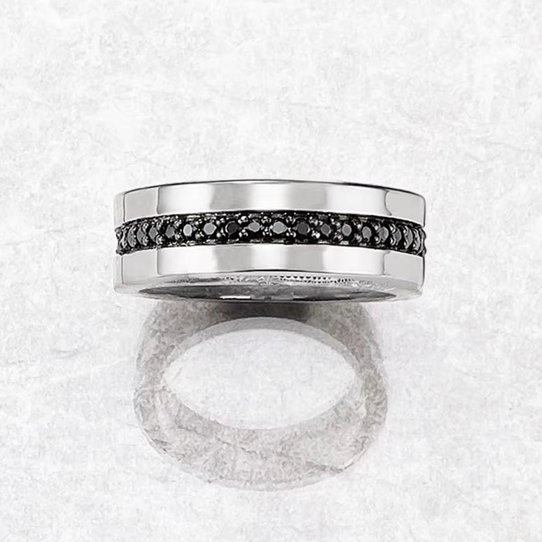 • Black eternity band — Continuous dark stones for a seamless, luxurious look