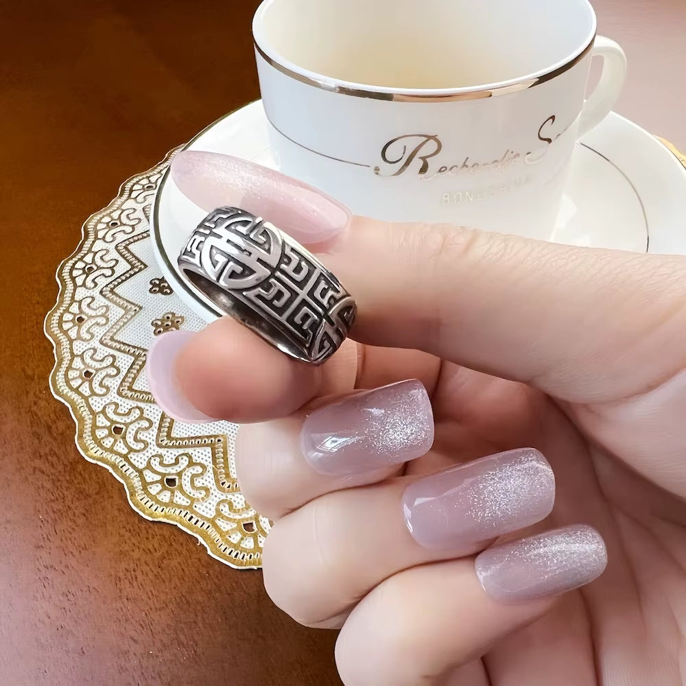 Carry a blessing wherever the night takes you. The Buddhist Blessing Ethno Band Ring is a deeply meaningful piece crafted in pure 925 sterling silver, featuring an ancient blessing sign etched into the band with rich ethnic artistry. Rooted in Buddhist prayer tradition, it's a ring that brings intention and peace to every moment.