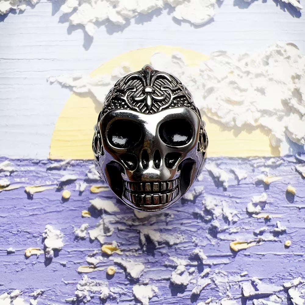 Blackened Lily Skull Ring | Night Collection