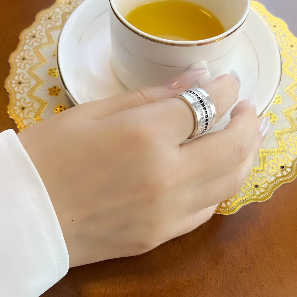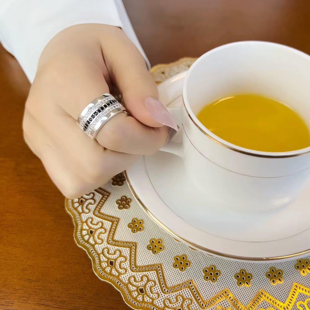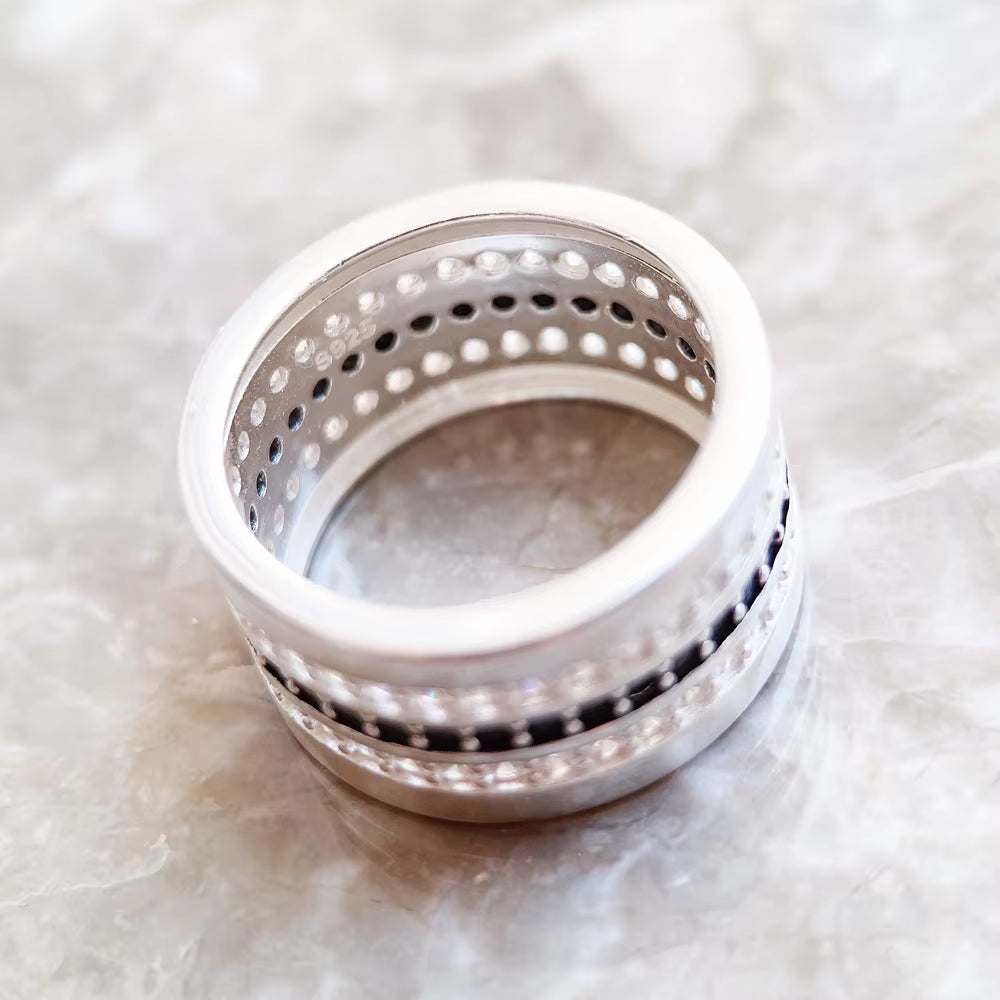• Black & White Zircon pave setting — Bold contrast that sparkles from every angle